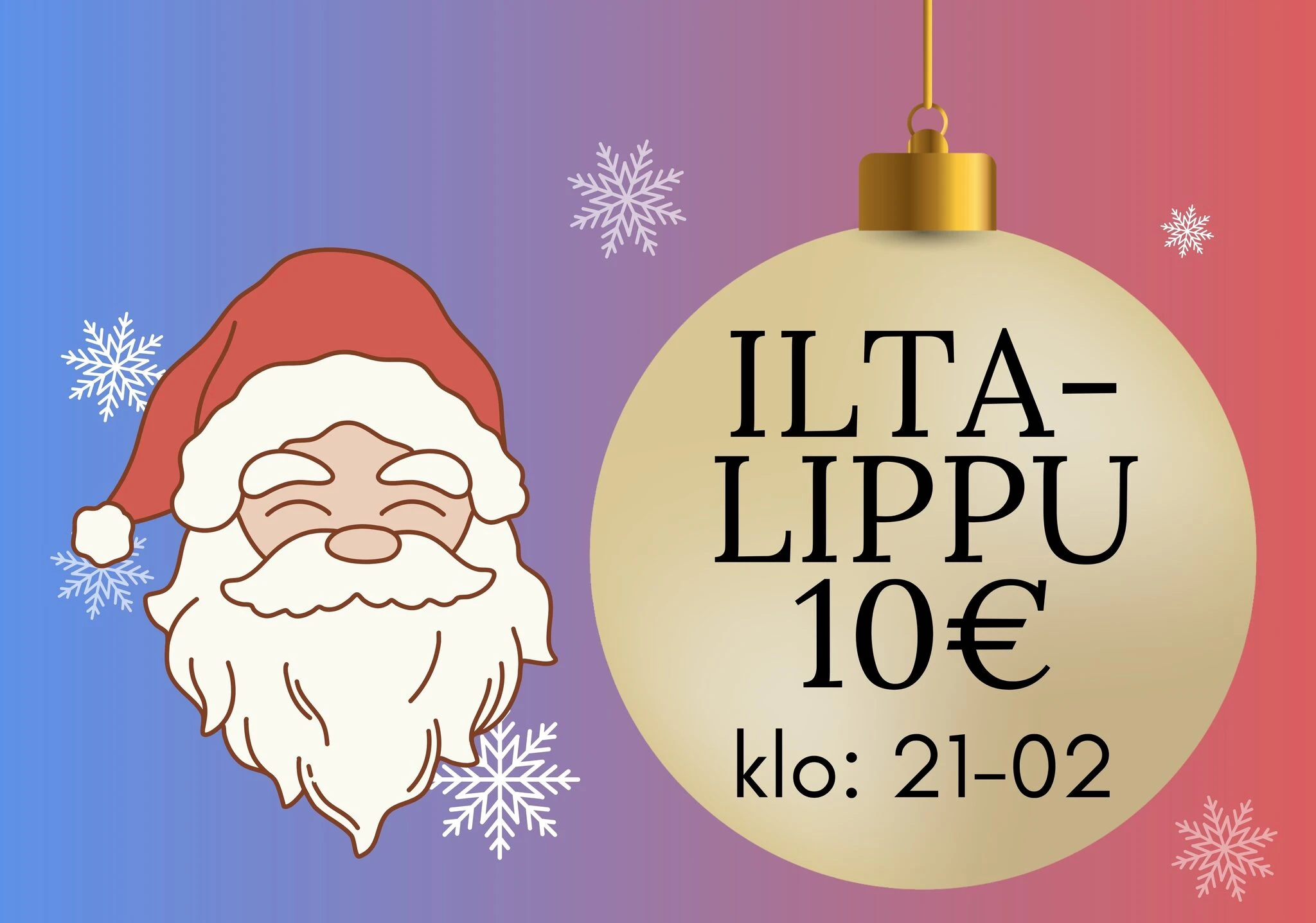 PIKKUJOULUBILEET 10€ - sisältää lipun iltabileisiin